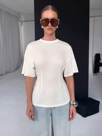AiiRZ Seamless Fitted Corset Style T Shirt With Princess Seams Modern Minimalist Design Contemporary Silhouette Elegant Sophisticated Basic Essential Top All Season Versatile Wardrobe Staple