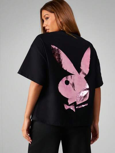 Missguided x Playboy Oversized Graphic Tee With Bunny Print