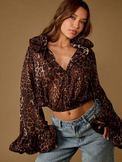 MISSGUIDED Ruffled Tie Front Blouse With Animal Print Pattern