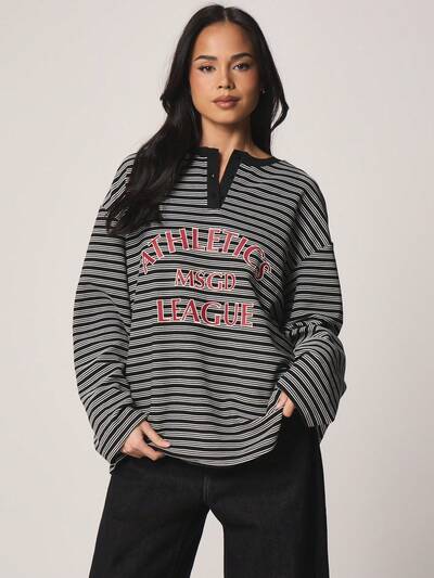 MISSGUIDED Striped Graphic Long Sleeve T-Shirt-15%