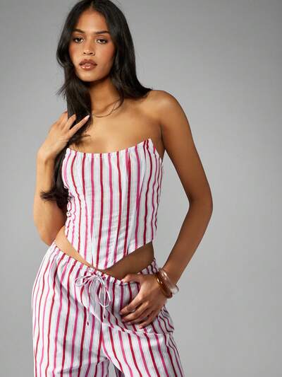 MISSGUIDED Pinstripe Crop Bustier Tank Top With Back Zipper-45%