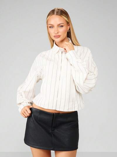 MISSGUIDED Cropped Pinstripe Jacket With Front Zip And Collar-45%
