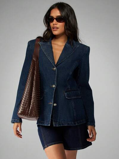 MISSGUIDED Fitted Denim Blazer With Double Button Closure