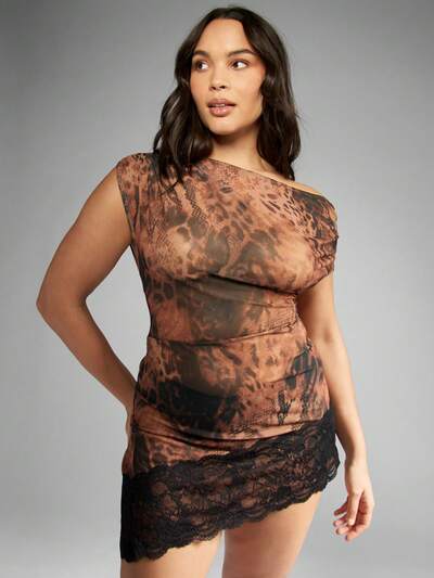 MISSGUIDED PLUS Plus Size One Shoulder Animal Print Mini Dress-55%