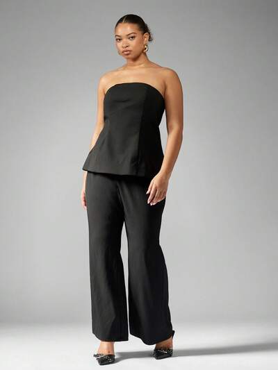 MISSGUIDED PLUS Plus Size Bandeau Strapless Top Wide Leg Pants Co-Ord-55%