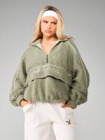 Missguided x Playboy Sherpa Half Zip Sweatshirt With Contrast Piping
