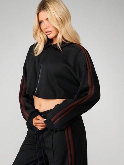 MISSGUIDED Collared Zip Through Sweatshirt With Stripe Detail