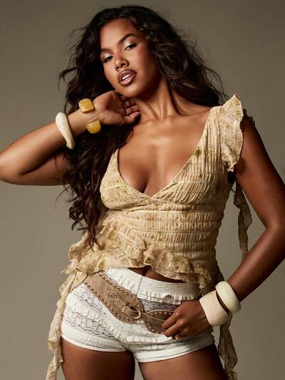 AiiRZ Boho V Neck Sheer Lace Ruffle Blouse-50%