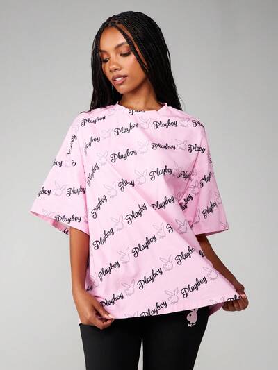 Missguided x Playboy Oversized Graphic Tee With All Over Print-40%