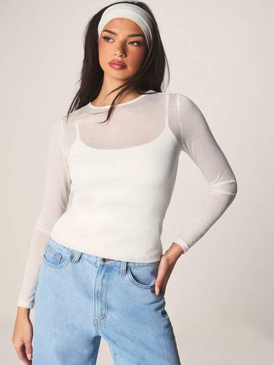 MISSGUIDED Double Layered Mesh Top With Fitted Cami