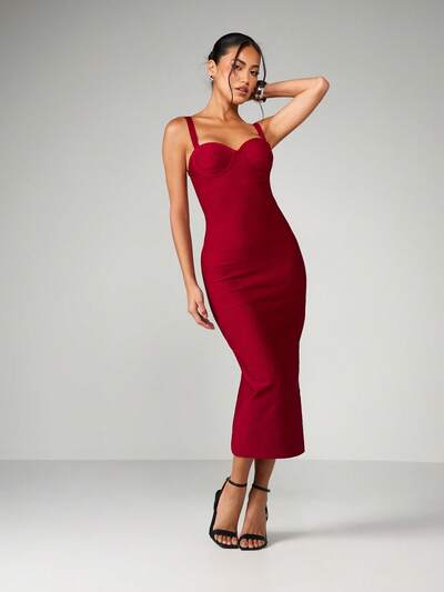 MISSGUIDED Sweetheart Bustier Midi Dress With Straps-45%