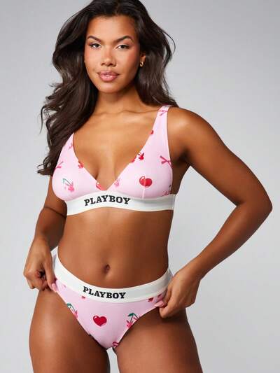 Missguided x Playboy Triangle Bralette With Cherry Print Set-50%