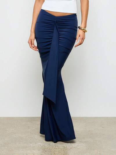 AiiRZ Mermaid Style Long Skirt Evening Formal Occasion Elegant Floor Length Gathered Draping Wedding Guest Party Gown Autumn Winter Holiday Season