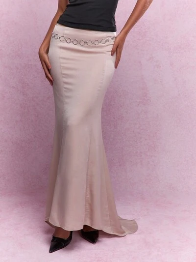 KIZN Bodycon Mini Skirt Chain Detail Side Accent Party Clubwear Evening Fall Winter Fashion Statement Metal Hardware