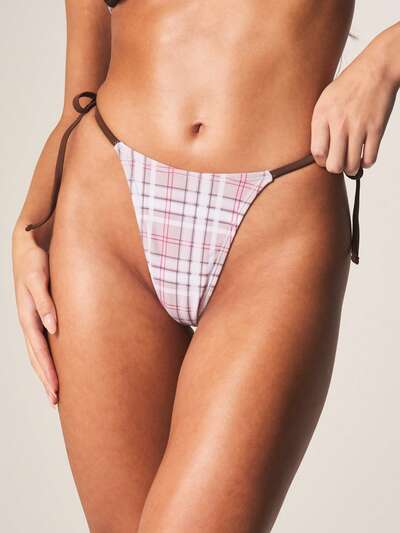 MISSGUIDED Plaid String Bikini Bottom With Ties-10%