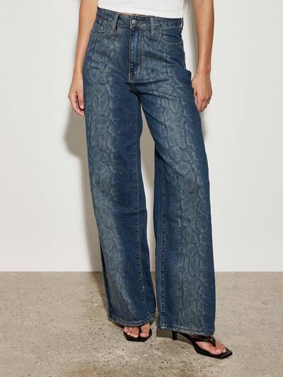 AiiRZ Designer Snake Print Wide Leg Jeans High Waisted Denim Pants Statement Premium Bottoms Y2K Fashion Trending Autumn Winter Party Club