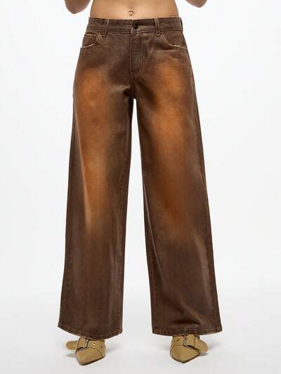 SUMWON WOMEN Wax Coated Wide Leg Jeans Fall Winter Collection Premium Denim Designer Palazzo High Waist Statement Pants Contemporary Fashion Streetwear Essential-55%