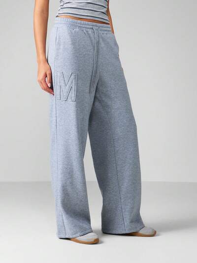 MISSGUIDED High Rise Wide Leg Joggers With Embossed Logo-50%