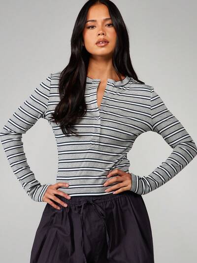 MISSGUIDED Striped Button Front Long Sleeve Top-50%