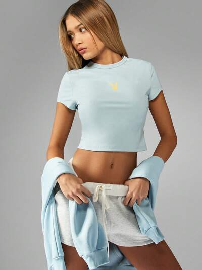 Missguided x Playboy Baby Tee Crop Short Sleeve Fitted T-Shirt-50%