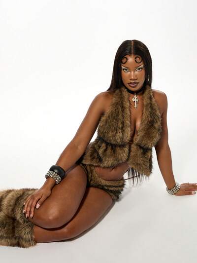 SUMWON WOMEN Halloween Faux Fur Hooded Crop Top Plush Sleeveless Vest Winter Festival Party Club Luxury Soft Furry Y2K Fashion Statement Piece-40%