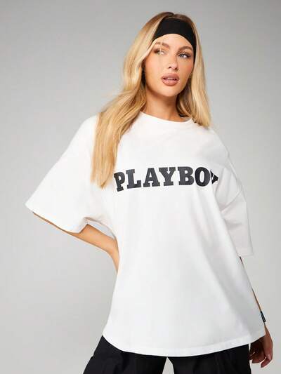 Missguided x Playboy Oversized Bunny Print Crew Neck Tee-40%