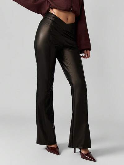 MISSGUIDED High Waisted Faux Leather Flare Pants-35%
