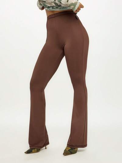 SUMWON WOMEN High Waisted Fitted Flare Pants For Women Fall Winter Brown Wide Leg Trousers Retro Bell Bottom Style