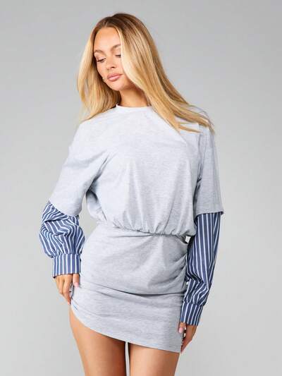 MISSGUIDED Oversized Mini Dress With Striped Sleeves-45%