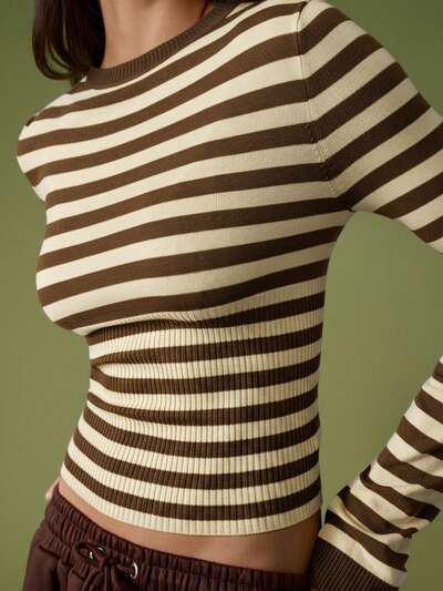 MISSGUIDED Striped Fitted Crop Knit Top With Ribbed Waist