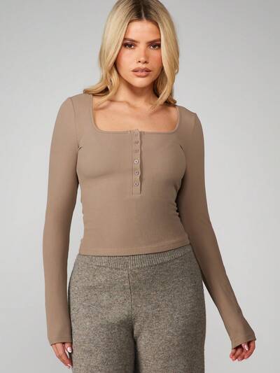 AiiRZ Long Sleeve Fitted T-Shirt With Keyhole Detail