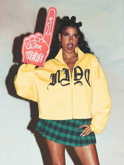 SUMWON WOMEN Varsity Patches Zip Up Hoodie With Drawstring College Style Numbers Premium Quality Graphic Fall Winter Street Style Casual Wear