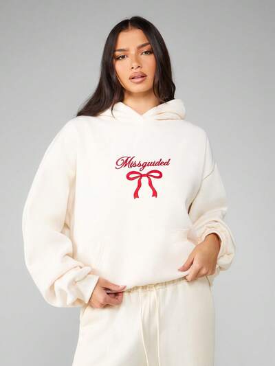 MISSGUIDED Oversized Fleece Hoodie With Red Bow Embroidery