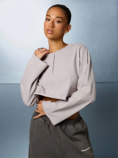 SUMWON WOMEN Washed Henley Neck Flared Long Sleeves Crop Tee-35%