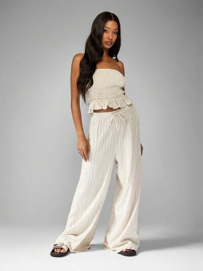MISSGUIDED Striped Knit Co-Ord Set With Bandeau Top And Wide Leg Pants-50%