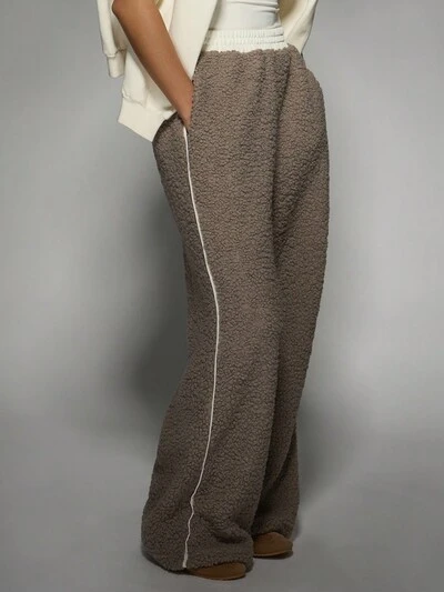 MISSGUIDED Cozy Teddy Fleece Wide Leg Relaxed Fit Sweatpants