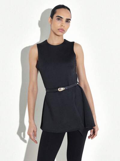 KSTM Women's Sleeveless Twist Front Tank Top With Asymmetrical Cross Over Design Black Casual Summer Blouse