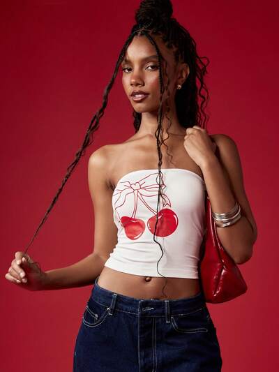 MISSGUIDED Cherry Print Bandeau Crop Strapless Women Tube Top