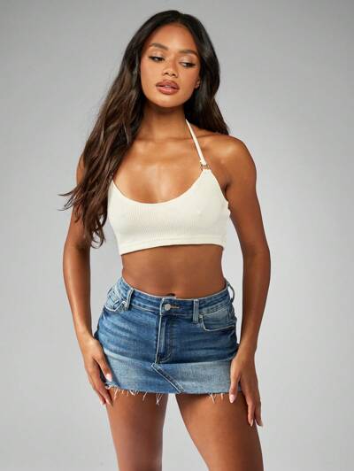 MISSGUIDED Ribbed Knit Halter Sleeveless Cropped Tank Top