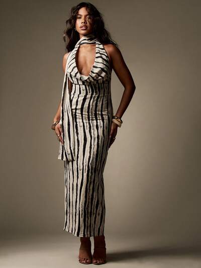 MISSGUIDED Elegant Striped Cowl Neck Halter Maxi DressCode: SAVE25