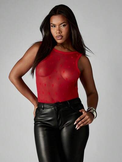 Missguided x Playboy High Neck Mesh Bodysuit With Bunny Pattern-35%