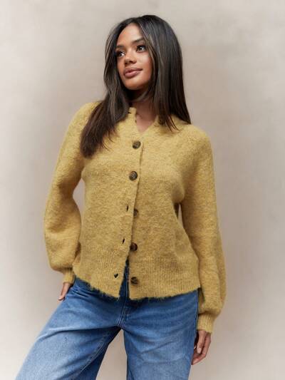 MISSGUIDED Warm Woollen Round Collar Button Through Balloon Sleeves Cardigan-45%