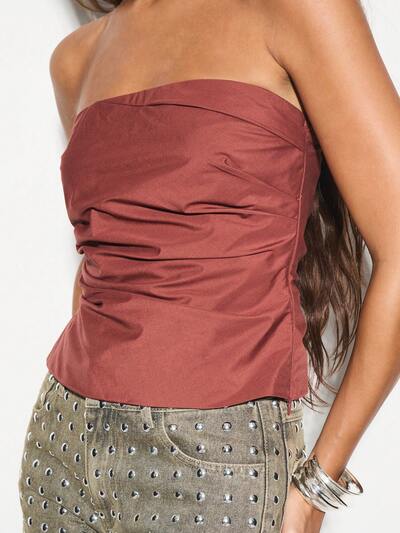 KIZN Strapless Ruched Cotton Poplin Corset Style Top Evening Party Club Night Occasion Summer Holiday Bustier Design-50%