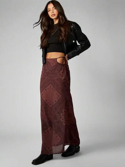 MISSGUIDED Paisley Print Maxi Skirt Cover Up With Side Tie Detail-50%