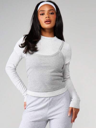 MISSGUIDED Ribbed High Neck Layered Top-55%
