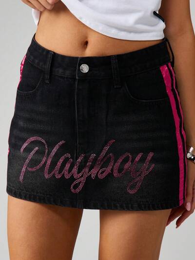 Missguided x Playboy Rhinestone Denim Mini Skirt-10%