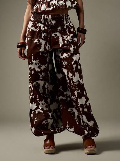 MISSGUIDED Cow Print Balloon Pants With Smocked Waist Band-50%
