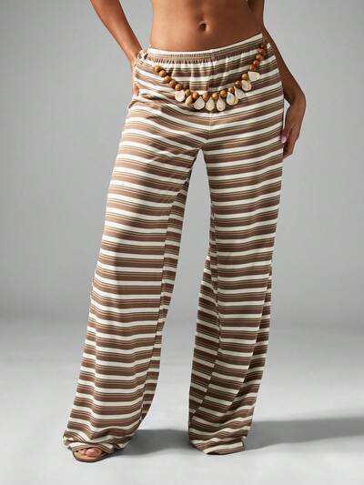 MISSGUIDED Stripe Palazzo Pants With Elastic Waist And Shell Beads