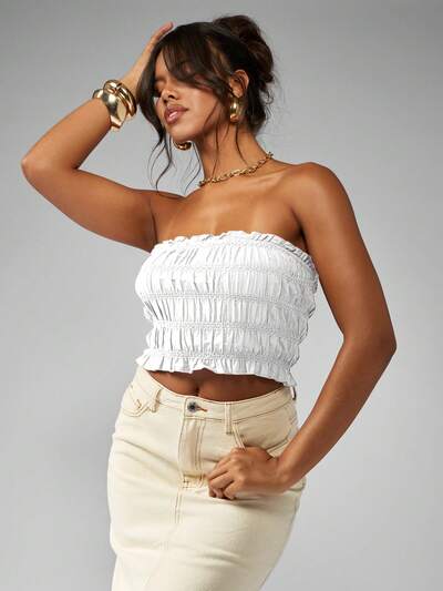 MISSGUIDED Ruched Shirred Strapless Backless Bandeau Crop TopCode: PAYDAY20