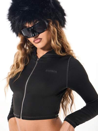 SUMWON WOMEN Zip Up Cropped Hoodie Long Sleeve Casual Fashion Hooded Sweatshirt Streetwear Winter Fall Festival Club Party Jacket Top